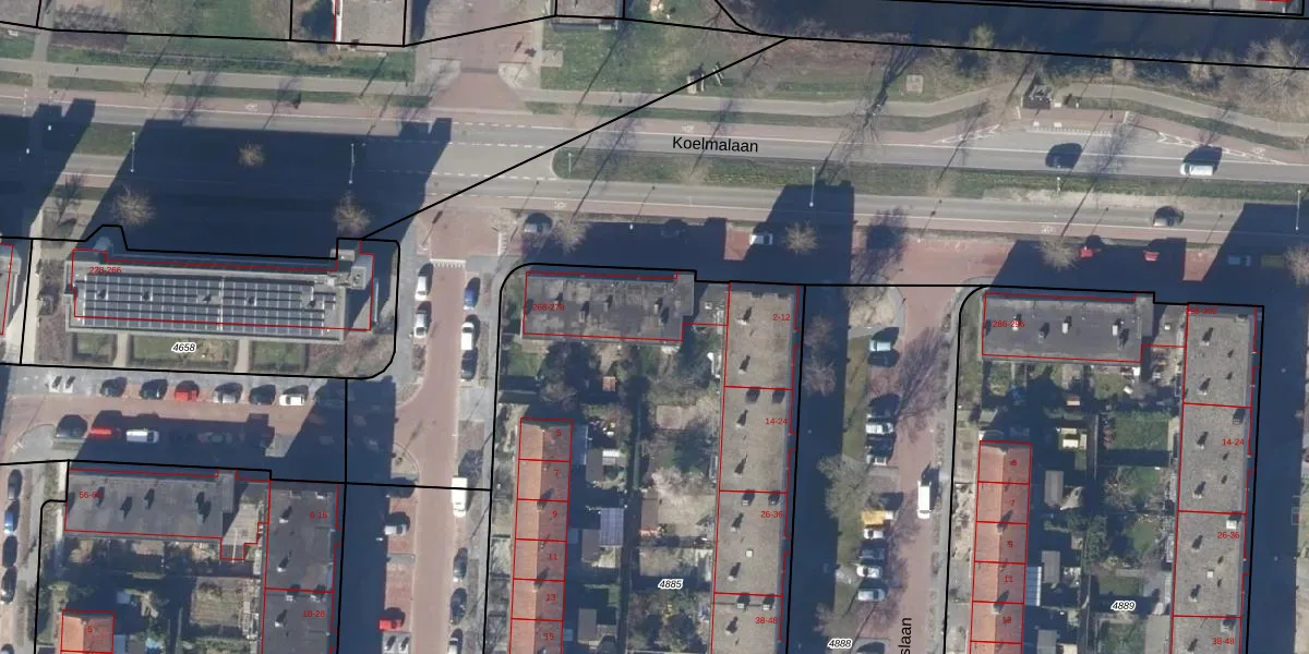 Het perceel waarop Koelmalaan 278 staat heeft een oppervlakte van 4190 m². Dit is een zeer groot perceel. De perceeloppervlakte wordt geregistreerd door het Kadaster. Gedetailleerde informatie over de maten van dit perceel kunt u vinden in het rapport Kadastrale kaart met maatvoering van Koelmalaan 278.