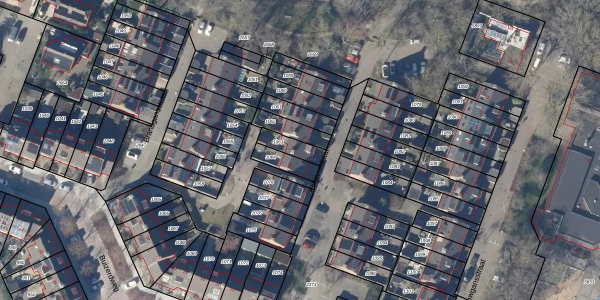 Gebruik de zoekbalk of klik op een perceel voor informatie over de adressen binnen dit perceel.