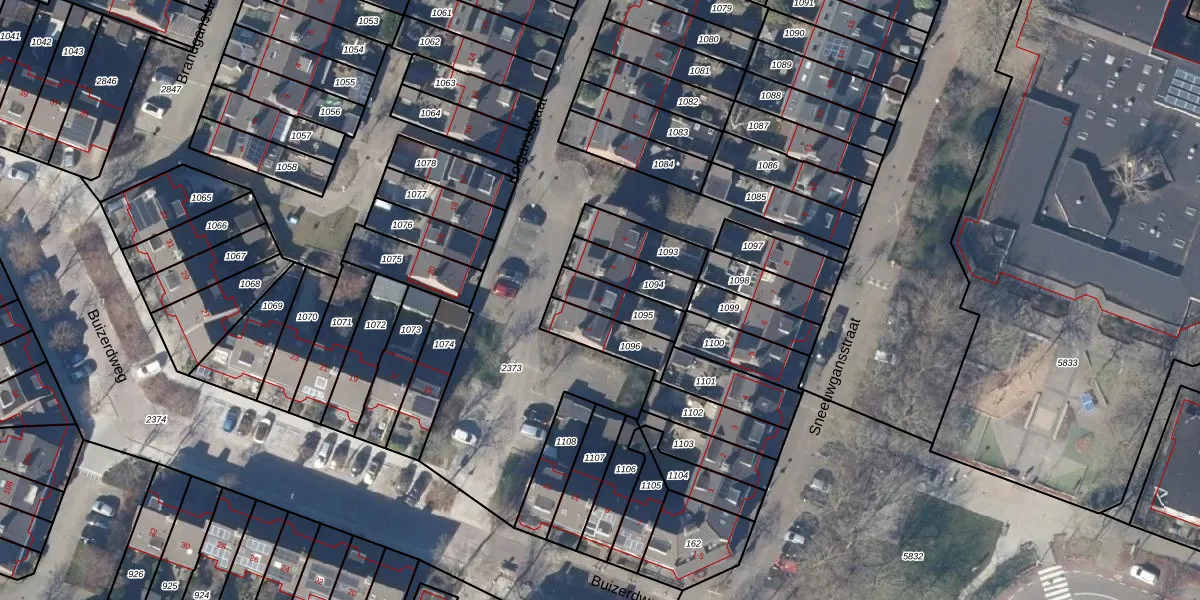 Gebruik de zoekbalk of klik op een perceel voor informatie over de adressen binnen dit perceel.