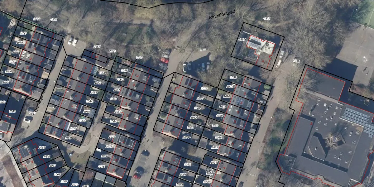 Gebruik de zoekbalk of klik op een perceel voor informatie over de adressen binnen dit perceel.