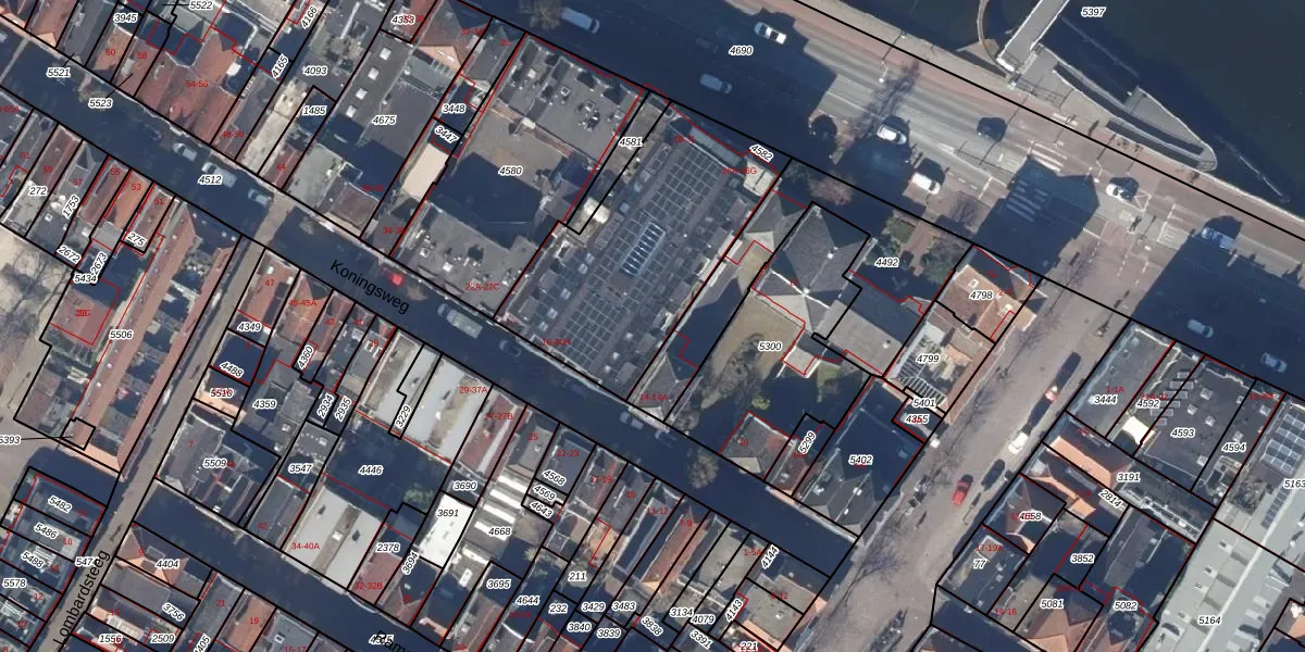 Het perceel waarop Koningsweg 16-J staat heeft een oppervlakte van 948 m². Dit is een groot perceel. De perceeloppervlakte wordt geregistreerd door het Kadaster. Gedetailleerde informatie over de maten van dit perceel kunt u vinden in het rapport Kadastrale kaart met maatvoering van Koningsweg 16-J.