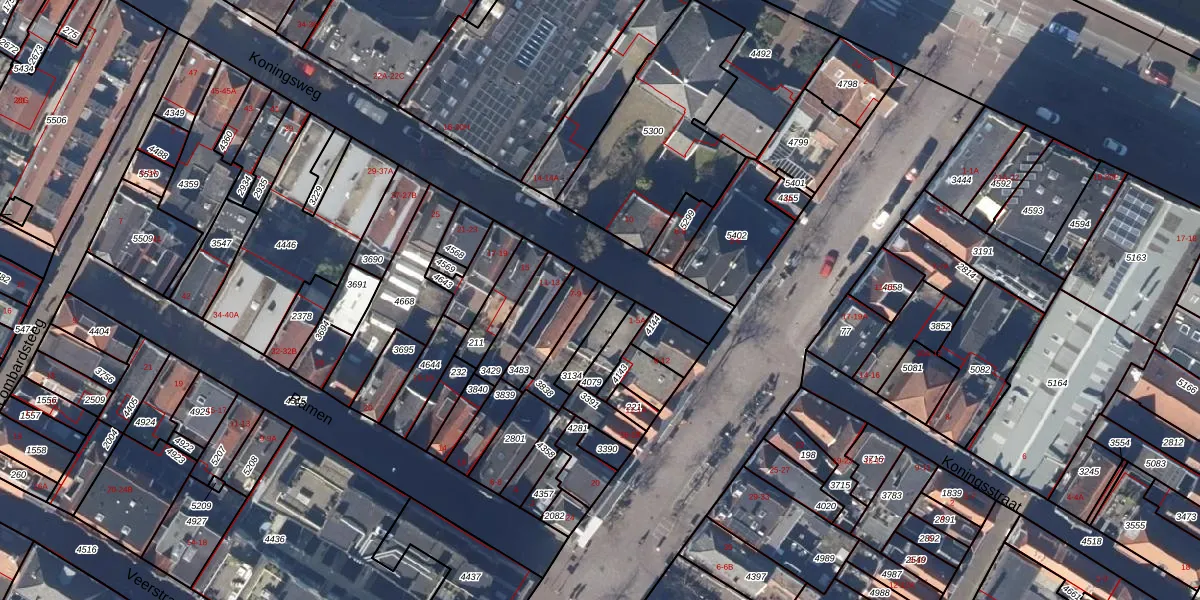 Het perceel waarop Koningsweg 5 staat heeft een oppervlakte van 88 m². Dit is een klein perceel. De perceeloppervlakte wordt geregistreerd door het Kadaster. Gedetailleerde informatie over de maten van dit perceel kunt u vinden in het rapport Kadastrale kaart met maatvoering van Koningsweg 5.