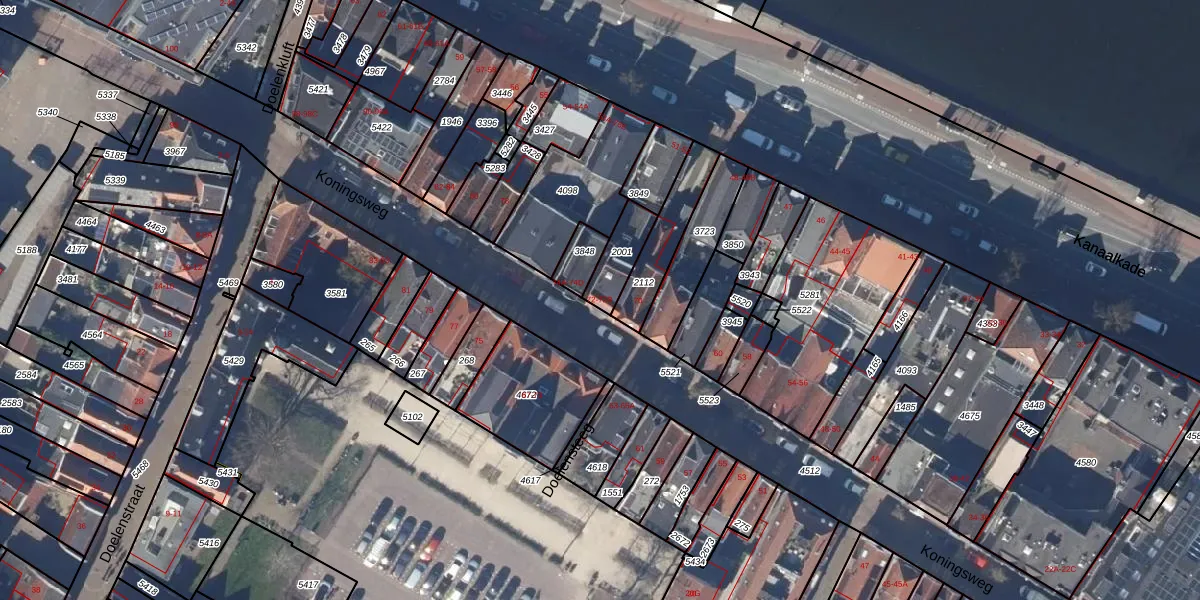 Het perceel waarop Koningsweg 72 staat heeft een oppervlakte van 99 m². Dit is een klein perceel. De perceeloppervlakte wordt geregistreerd door het Kadaster. Gedetailleerde informatie over de maten van dit perceel kunt u vinden in het rapport Kadastrale kaart met maatvoering van Koningsweg 72.