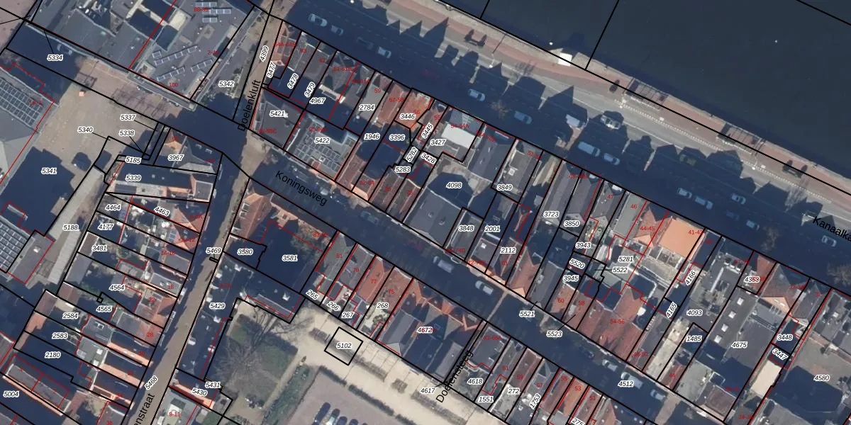 Het perceel waarop Koningsweg 76-B staat heeft een oppervlakte van 355 m². Dit is een groot perceel. De perceeloppervlakte wordt geregistreerd door het Kadaster. Gedetailleerde informatie over de maten van dit perceel kunt u vinden in het rapport Kadastrale kaart met maatvoering van Koningsweg 76-B.