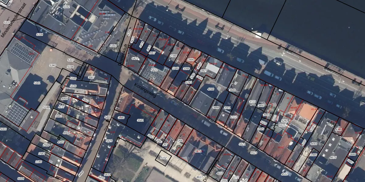 Het perceel waarop Koningsweg 80 staat heeft een oppervlakte van 56 m². Dit is een klein perceel. De perceeloppervlakte wordt geregistreerd door het Kadaster. Gedetailleerde informatie over de maten van dit perceel kunt u vinden in het rapport Kadastrale kaart met maatvoering van Koningsweg 80.