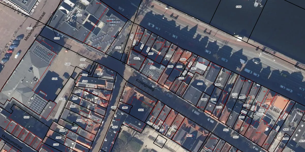 Het perceel waarop Koningsweg 90 staat heeft een oppervlakte van 163 m². Dit is een middelgroot perceel. De perceeloppervlakte wordt geregistreerd door het Kadaster. Gedetailleerde informatie over de maten van dit perceel kunt u vinden in het rapport Kadastrale kaart met maatvoering van Koningsweg 90.