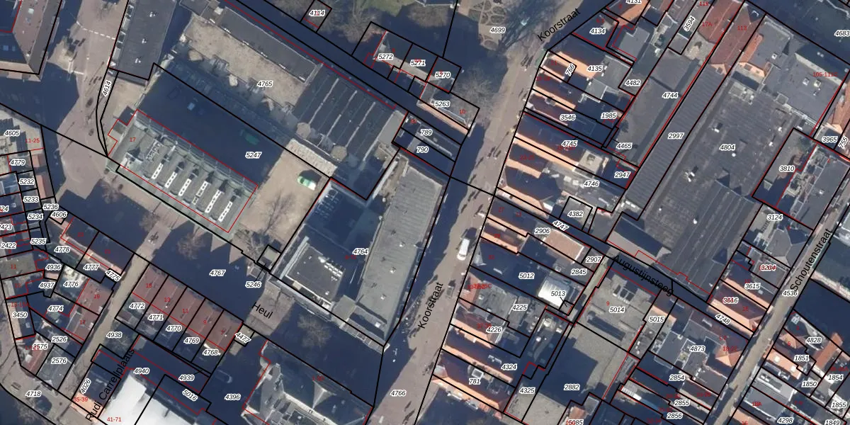 Het perceel waarop Koorstraat 18 staat heeft een oppervlakte van 1035 m². Dit is een zeer groot perceel. De perceeloppervlakte wordt geregistreerd door het Kadaster. Gedetailleerde informatie over de maten van dit perceel kunt u vinden in het rapport Kadastrale kaart met maatvoering van Koorstraat 18.