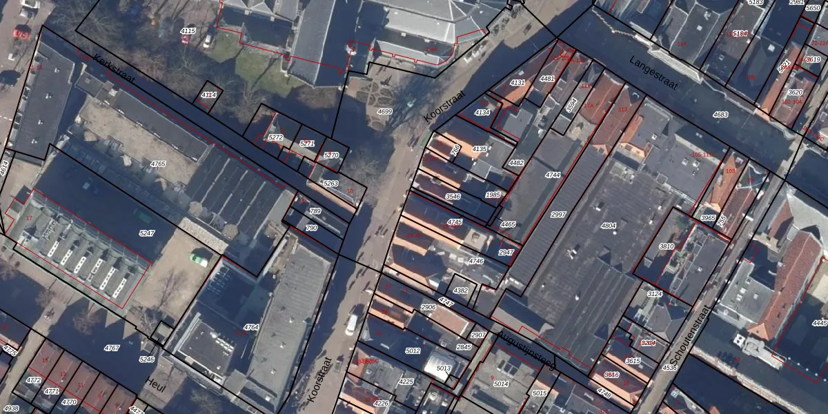 Het perceel waarop Koorstraat 21 staat heeft een oppervlakte van 185 m². Dit is een middelgroot perceel. De perceeloppervlakte wordt geregistreerd door het Kadaster. Gedetailleerde informatie over de maten van dit perceel kunt u vinden in het rapport Kadastrale kaart met maatvoering van Koorstraat 21.