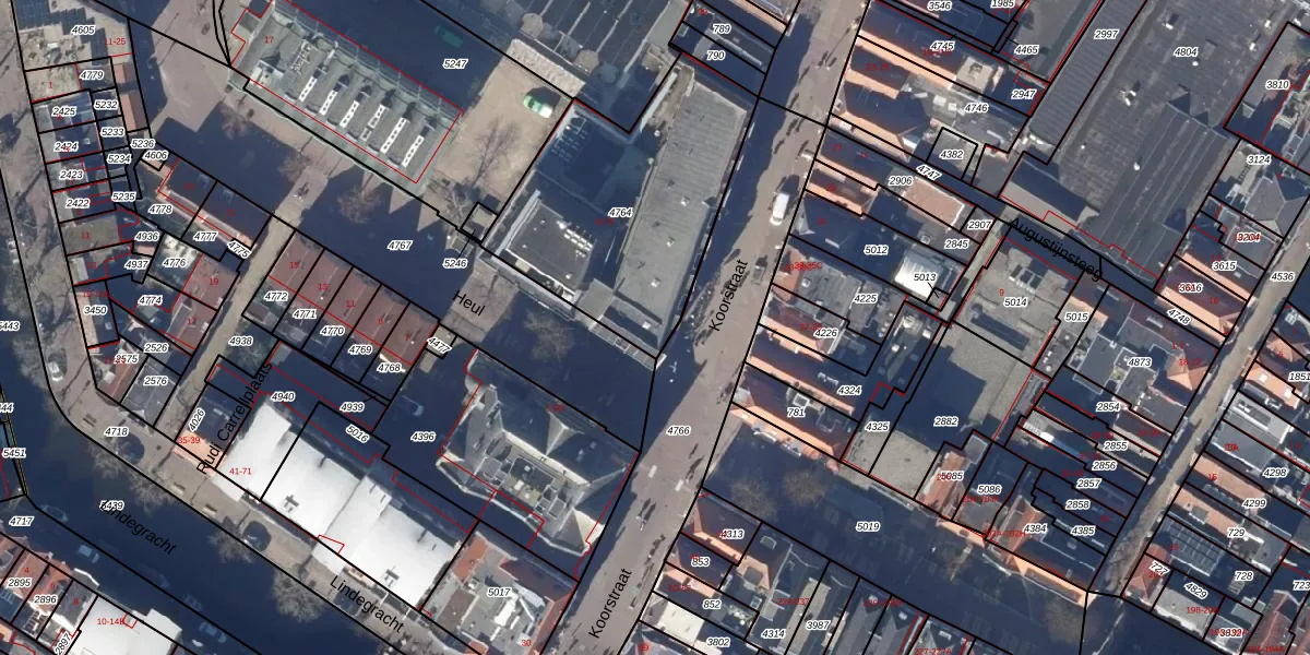 Het perceel waarop Koorstraat 26 staat heeft een oppervlakte van 1035 m². Dit is een zeer groot perceel. De perceeloppervlakte wordt geregistreerd door het Kadaster. Gedetailleerde informatie over de maten van dit perceel kunt u vinden in het rapport Kadastrale kaart met maatvoering van Koorstraat 26.
