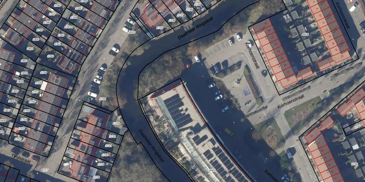 Het perceel waarop Korhoenstraat 123 staat heeft een oppervlakte van 2655 m². Dit is een zeer groot perceel. De perceeloppervlakte wordt geregistreerd door het Kadaster. Gedetailleerde informatie over de maten van dit perceel kunt u vinden in het rapport Kadastrale kaart met maatvoering van Korhoenstraat 123.
