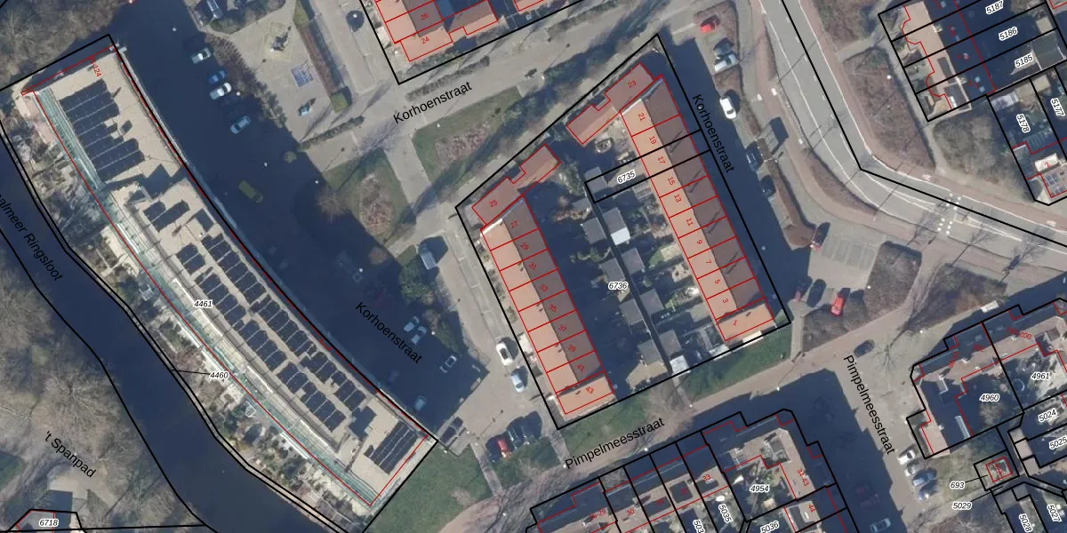 Het perceel waarop Korhoenstraat 31 staat heeft een oppervlakte van 2426 m². Dit is een zeer groot perceel. De perceeloppervlakte wordt geregistreerd door het Kadaster. Gedetailleerde informatie over de maten van dit perceel kunt u vinden in het rapport Kadastrale kaart met maatvoering van Korhoenstraat 31.