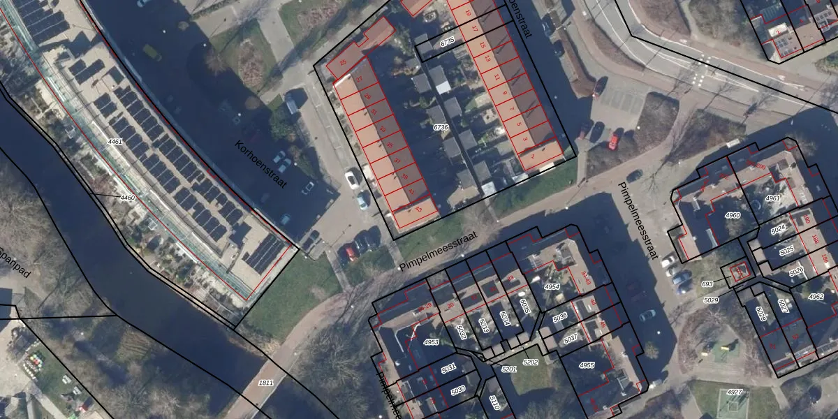 Het perceel waarop Korhoenstraat 43 staat heeft een oppervlakte van 2426 m². Dit is een zeer groot perceel. De perceeloppervlakte wordt geregistreerd door het Kadaster. Gedetailleerde informatie over de maten van dit perceel kunt u vinden in het rapport Kadastrale kaart met maatvoering van Korhoenstraat 43.