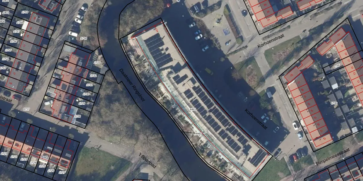 Het perceel waarop Korhoenstraat 60 staat heeft een oppervlakte van 2655 m². Dit is een zeer groot perceel. De perceeloppervlakte wordt geregistreerd door het Kadaster. Gedetailleerde informatie over de maten van dit perceel kunt u vinden in het rapport Kadastrale kaart met maatvoering van Korhoenstraat 60.