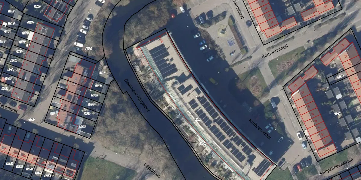 Het perceel waarop Korhoenstraat 61 staat heeft een oppervlakte van 2655 m². Dit is een zeer groot perceel. De perceeloppervlakte wordt geregistreerd door het Kadaster. Gedetailleerde informatie over de maten van dit perceel kunt u vinden in het rapport Kadastrale kaart met maatvoering van Korhoenstraat 61.