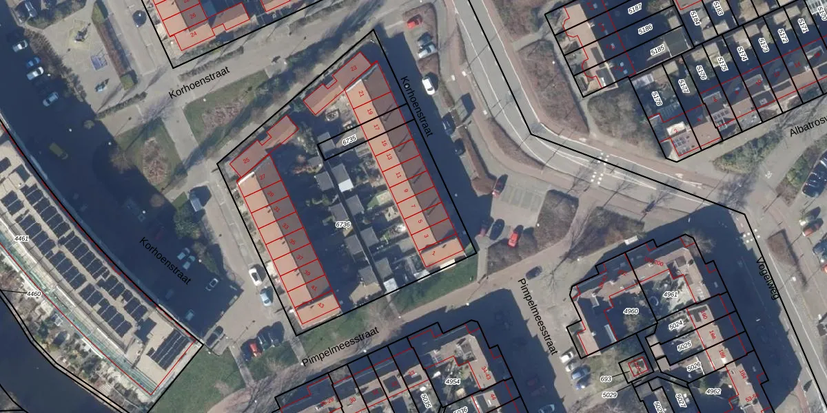 Het perceel waarop Korhoenstraat 7 staat heeft een oppervlakte van 2426 m². Dit is een zeer groot perceel. De perceeloppervlakte wordt geregistreerd door het Kadaster. Gedetailleerde informatie over de maten van dit perceel kunt u vinden in het rapport Kadastrale kaart met maatvoering van Korhoenstraat 7.