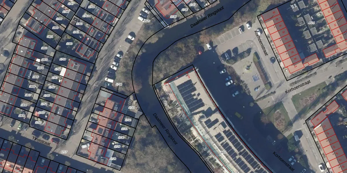 Het perceel waarop Korhoenstraat 84 staat heeft een oppervlakte van 2655 m². Dit is een zeer groot perceel. De perceeloppervlakte wordt geregistreerd door het Kadaster. Gedetailleerde informatie over de maten van dit perceel kunt u vinden in het rapport Kadastrale kaart met maatvoering van Korhoenstraat 84.