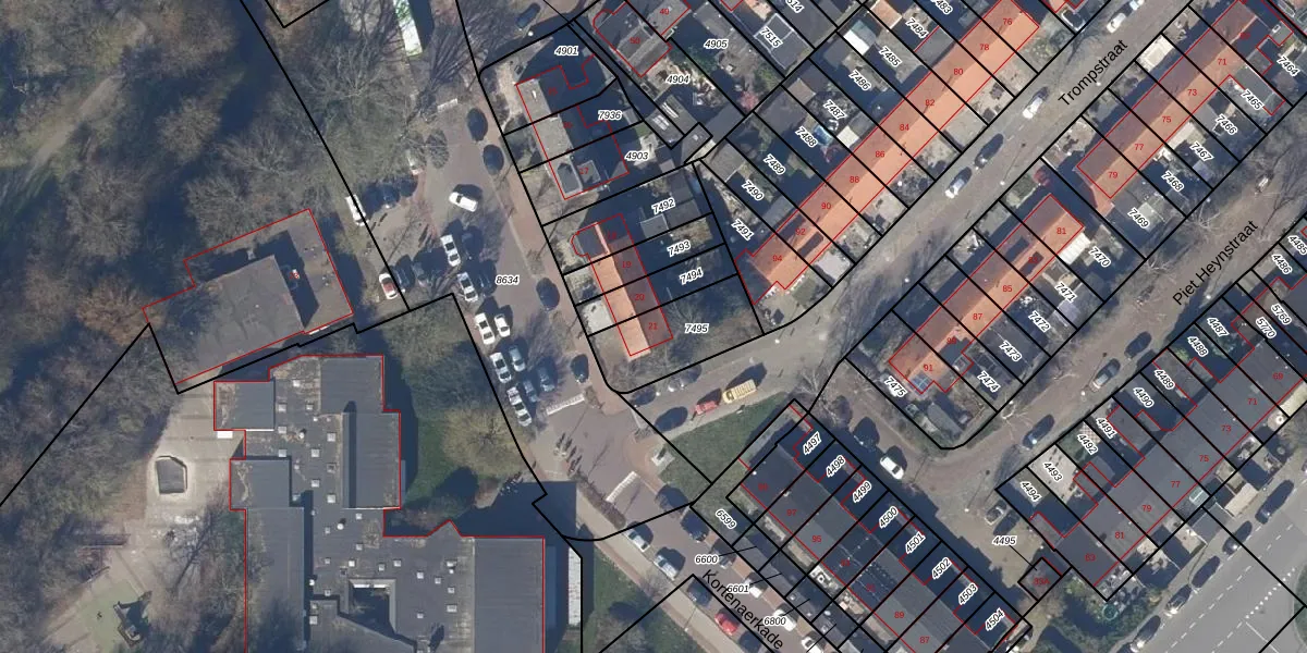 Gebruik de zoekbalk of klik op een perceel voor informatie over de adressen binnen dit perceel.