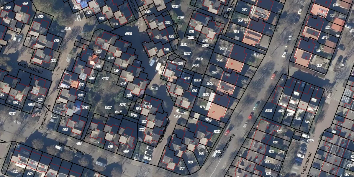Gebruik de zoekbalk of klik op een perceel voor informatie over de adressen binnen dit perceel.