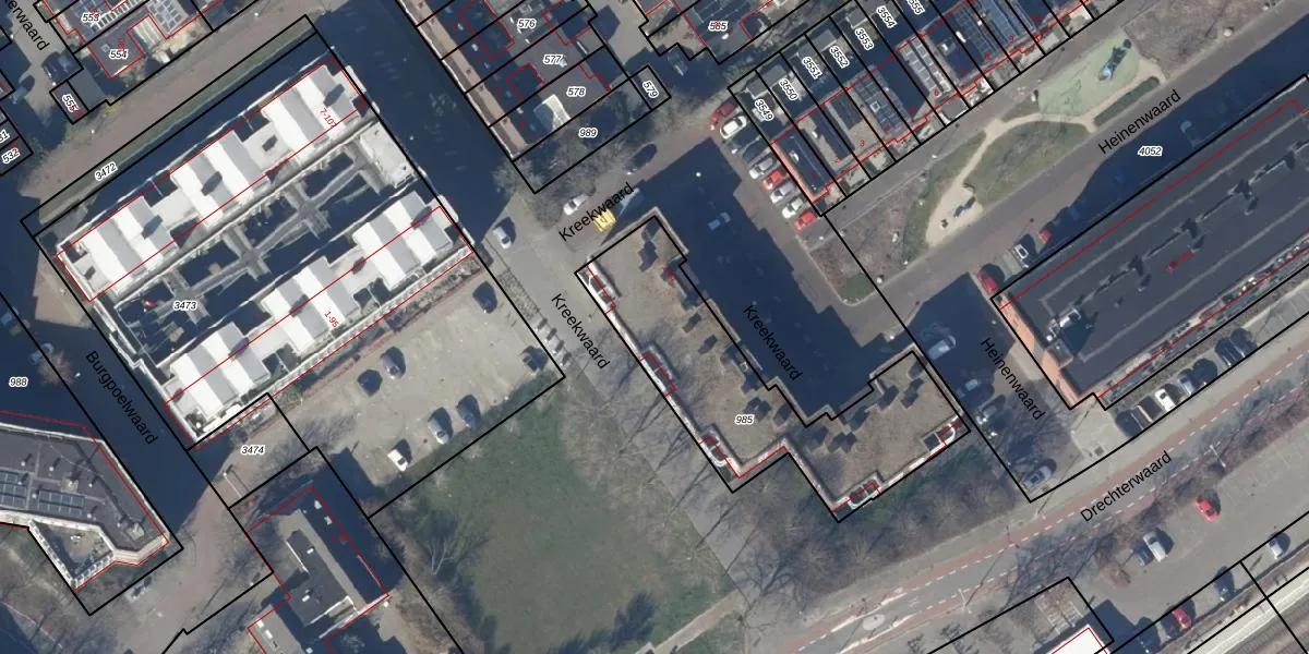 Het perceel waarop Kreekwaard 12 staat heeft een oppervlakte van 934 m². Dit is een groot perceel. De perceeloppervlakte wordt geregistreerd door het Kadaster. Gedetailleerde informatie over de maten van dit perceel kunt u vinden in het rapport Kadastrale kaart met maatvoering van Kreekwaard 12.