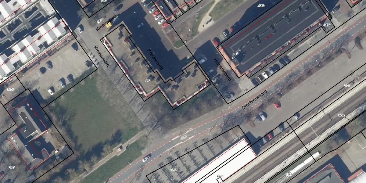 Het perceel waarop Kreekwaard 46 staat heeft een oppervlakte van 934 m². Dit is een groot perceel. De perceeloppervlakte wordt geregistreerd door het Kadaster. Gedetailleerde informatie over de maten van dit perceel kunt u vinden in het rapport Kadastrale kaart met maatvoering van Kreekwaard 46.