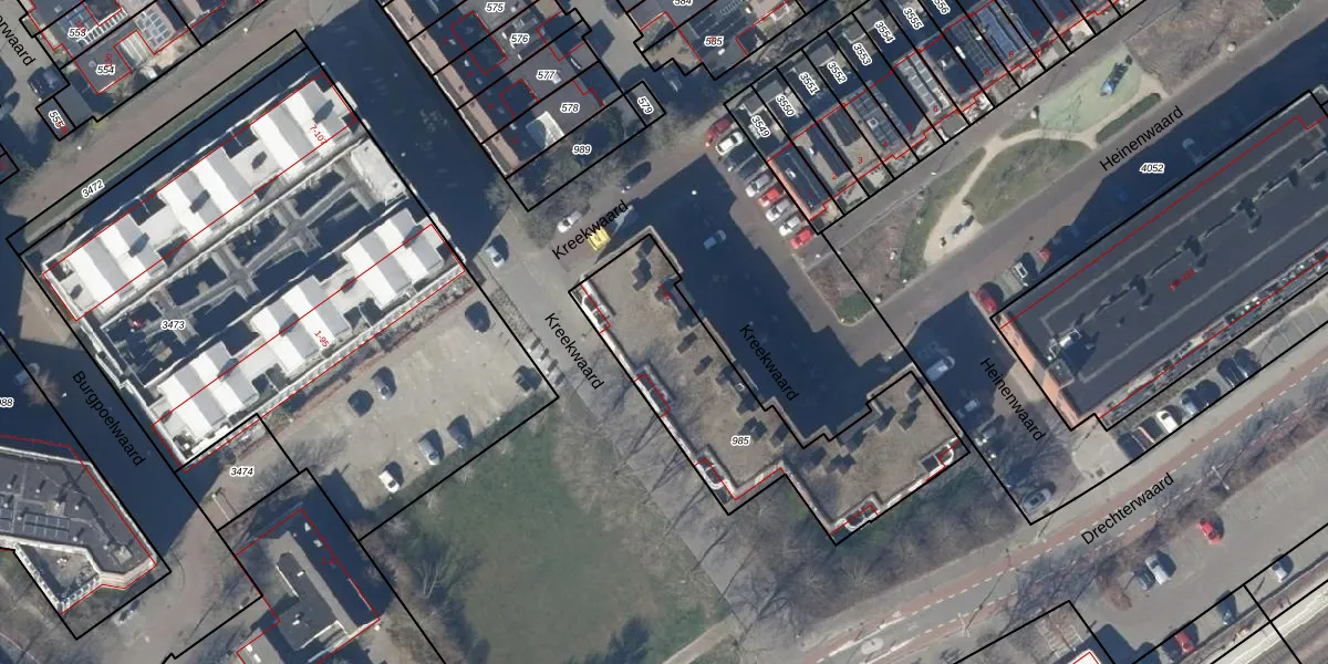 Het perceel waarop Kreekwaard 8 staat heeft een oppervlakte van 934 m². Dit is een groot perceel. De perceeloppervlakte wordt geregistreerd door het Kadaster. Gedetailleerde informatie over de maten van dit perceel kunt u vinden in het rapport Kadastrale kaart met maatvoering van Kreekwaard 8.