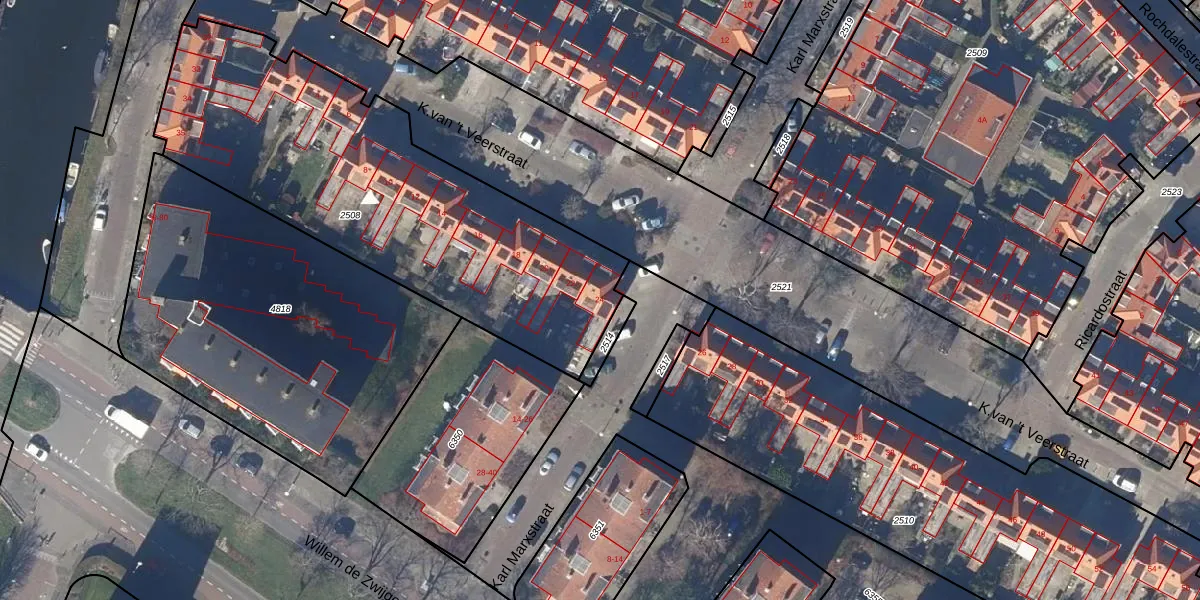Het perceel waarop K.van 't Veerstraat 24 staat heeft een oppervlakte van 1935 m². Dit is een zeer groot perceel. De perceeloppervlakte wordt geregistreerd door het Kadaster. Gedetailleerde informatie over de maten van dit perceel kunt u vinden in het rapport Kadastrale kaart met maatvoering van K.van 't Veerstraat 24.
