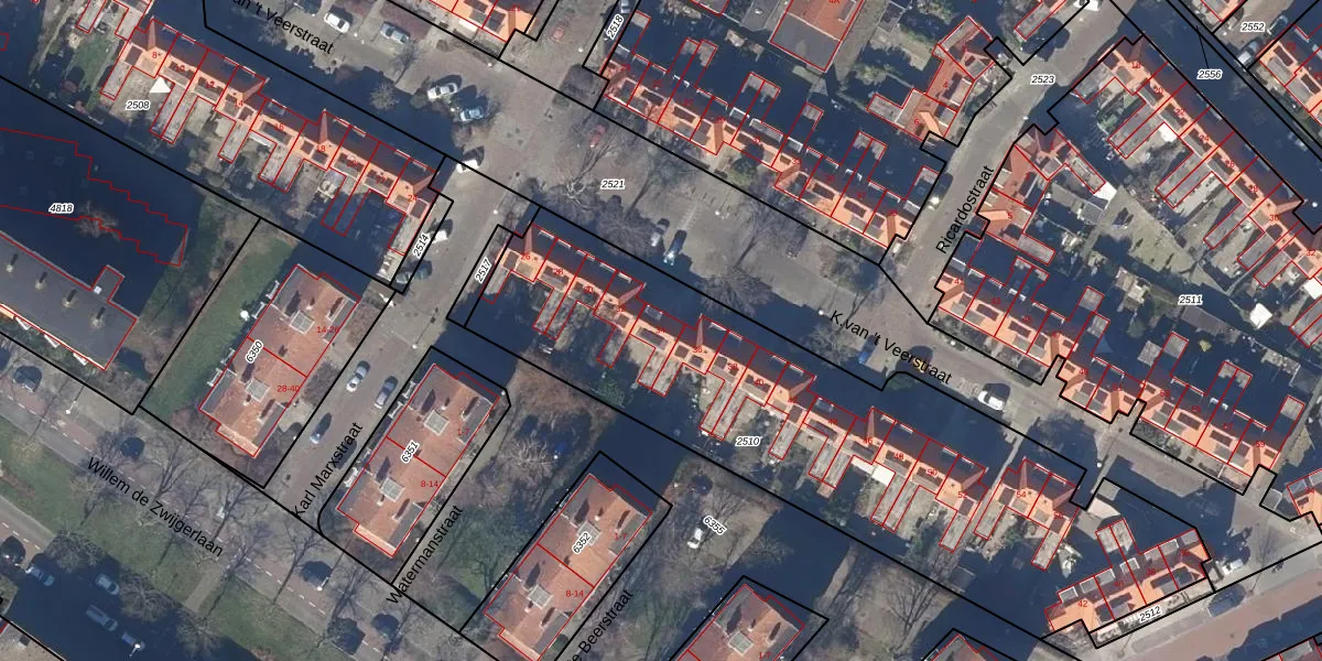Het perceel waarop K.van 't Veerstraat 34 staat heeft een oppervlakte van 2560 m². Dit is een zeer groot perceel. De perceeloppervlakte wordt geregistreerd door het Kadaster. Gedetailleerde informatie over de maten van dit perceel kunt u vinden in het rapport Kadastrale kaart met maatvoering van K.van 't Veerstraat 34.