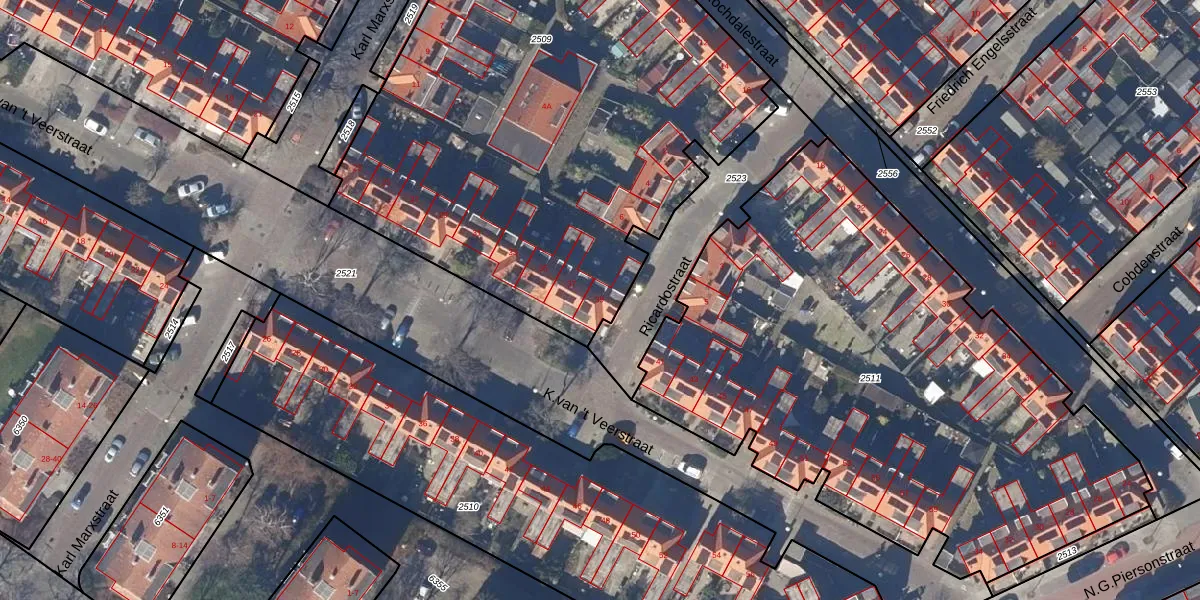 Het perceel waarop K.van 't Veerstraat 39 staat heeft een oppervlakte van 3050 m². Dit is een zeer groot perceel. De perceeloppervlakte wordt geregistreerd door het Kadaster. Gedetailleerde informatie over de maten van dit perceel kunt u vinden in het rapport Kadastrale kaart met maatvoering van K.van 't Veerstraat 39.