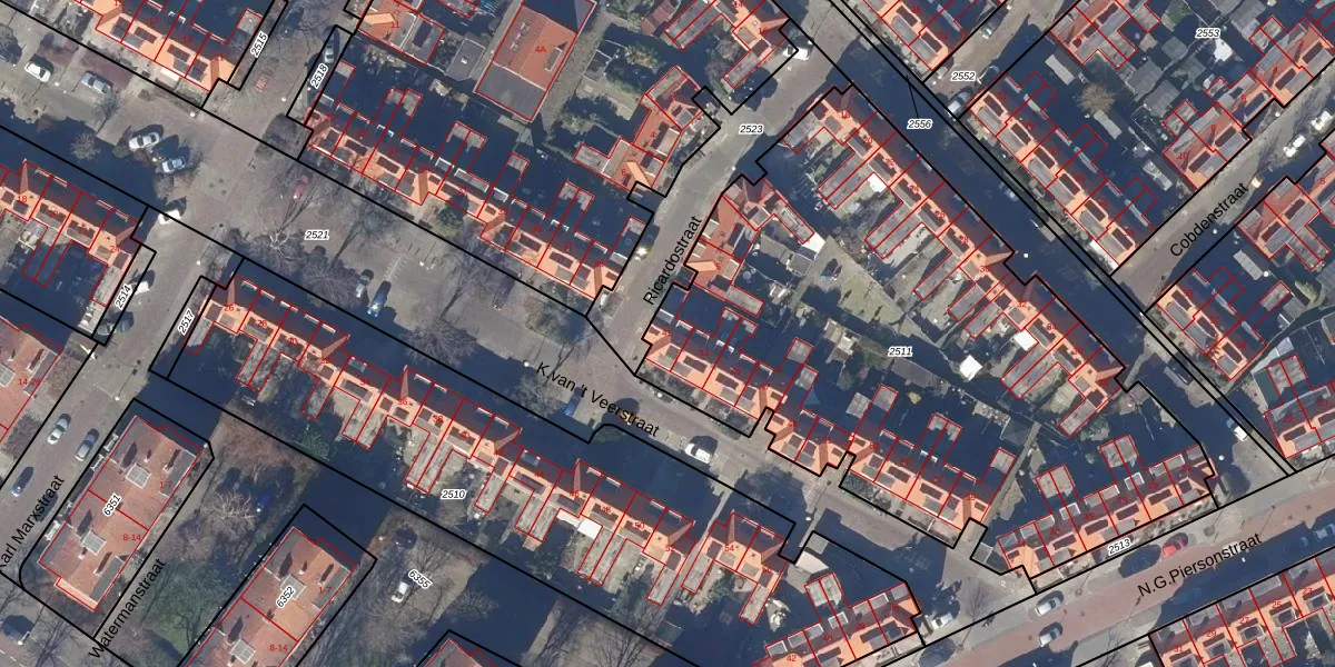Het perceel waarop K.van 't Veerstraat 41 staat heeft een oppervlakte van 3285 m². Dit is een zeer groot perceel. De perceeloppervlakte wordt geregistreerd door het Kadaster. Gedetailleerde informatie over de maten van dit perceel kunt u vinden in het rapport Kadastrale kaart met maatvoering van K.van 't Veerstraat 41.