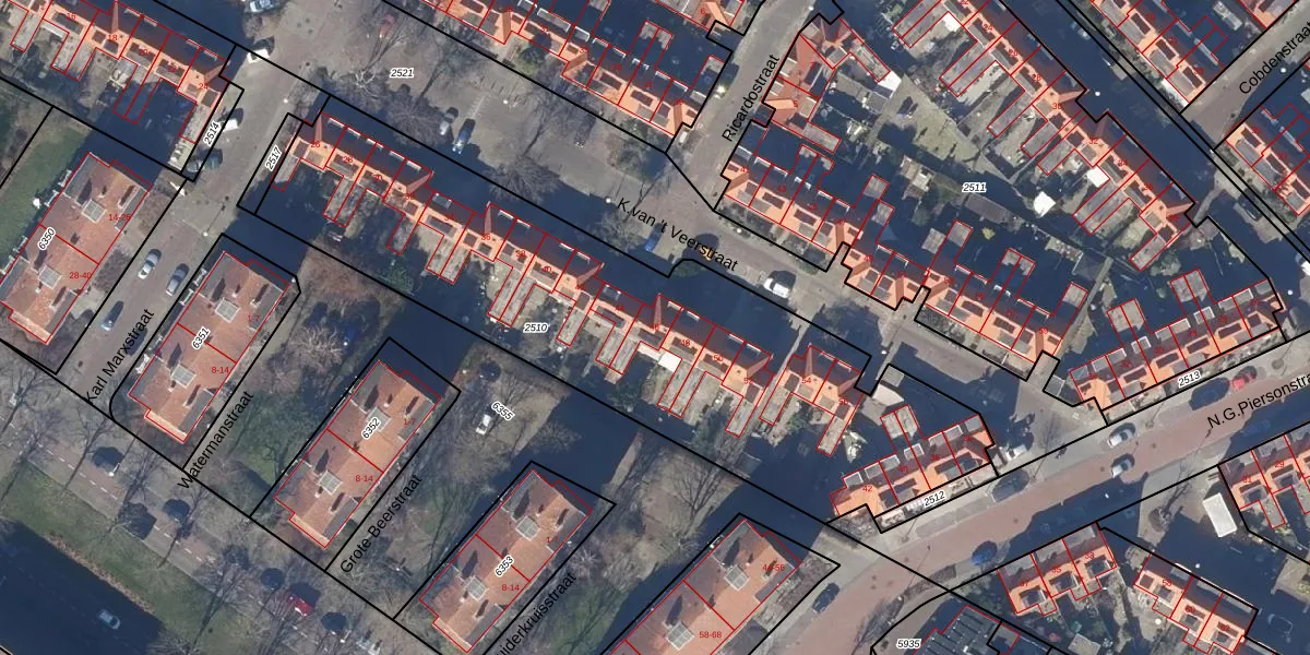 Het perceel waarop K.van 't Veerstraat 46 staat heeft een oppervlakte van 2560 m². Dit is een zeer groot perceel. De perceeloppervlakte wordt geregistreerd door het Kadaster. Gedetailleerde informatie over de maten van dit perceel kunt u vinden in het rapport Kadastrale kaart met maatvoering van K.van 't Veerstraat 46.