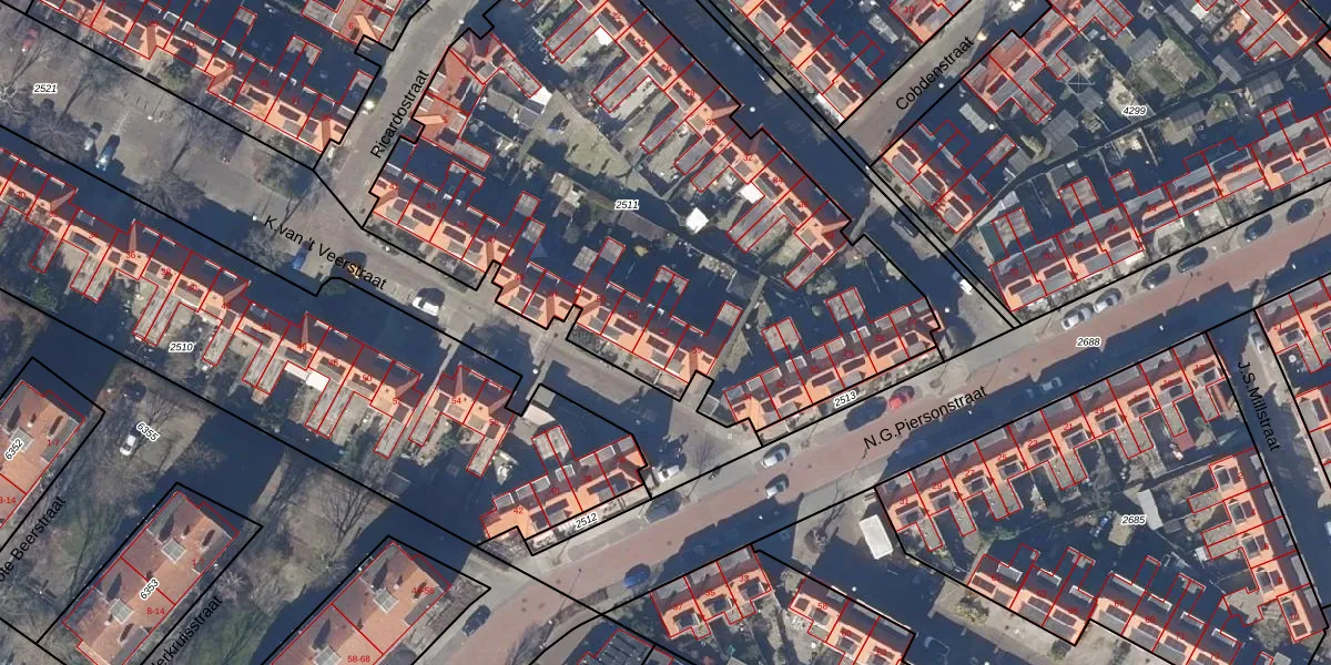 Het perceel waarop K.van 't Veerstraat 57 staat heeft een oppervlakte van 3285 m². Dit is een zeer groot perceel. De perceeloppervlakte wordt geregistreerd door het Kadaster. Gedetailleerde informatie over de maten van dit perceel kunt u vinden in het rapport Kadastrale kaart met maatvoering van K.van 't Veerstraat 57.
