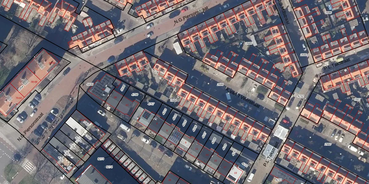 Het perceel waarop K.van 't Veerstraat 64 staat heeft een oppervlakte van 1565 m². Dit is een zeer groot perceel. De perceeloppervlakte wordt geregistreerd door het Kadaster. Gedetailleerde informatie over de maten van dit perceel kunt u vinden in het rapport Kadastrale kaart met maatvoering van K.van 't Veerstraat 64.