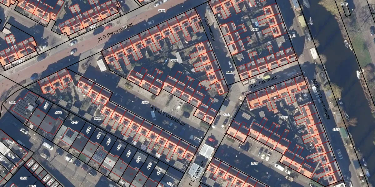 Het perceel waarop K.van 't Veerstraat 71 staat heeft een oppervlakte van 2160 m². Dit is een zeer groot perceel. De perceeloppervlakte wordt geregistreerd door het Kadaster. Gedetailleerde informatie over de maten van dit perceel kunt u vinden in het rapport Kadastrale kaart met maatvoering van K.van 't Veerstraat 71.
