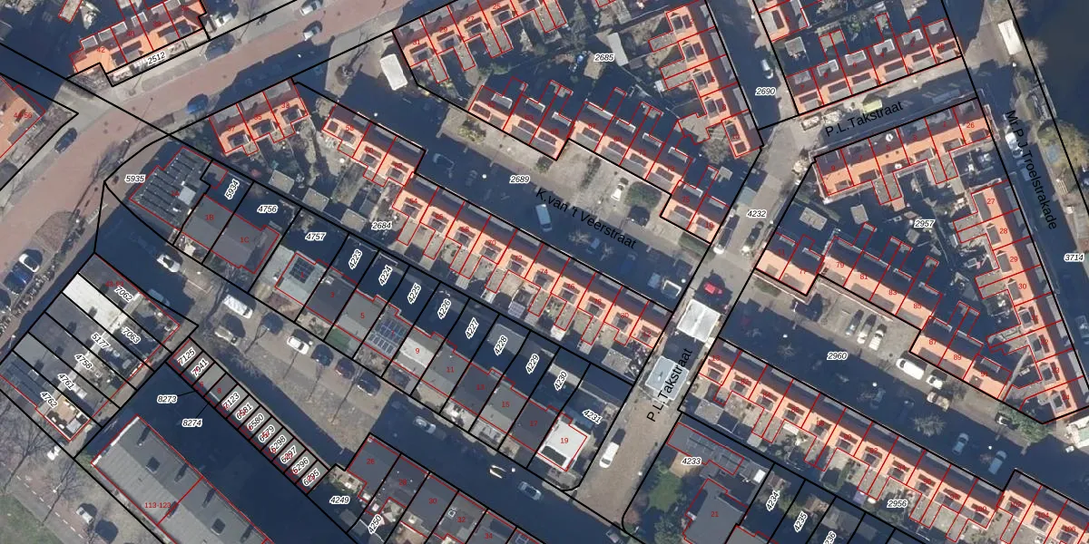 Het perceel waarop K.van 't Veerstraat 74 staat heeft een oppervlakte van 1565 m². Dit is een zeer groot perceel. De perceeloppervlakte wordt geregistreerd door het Kadaster. Gedetailleerde informatie over de maten van dit perceel kunt u vinden in het rapport Kadastrale kaart met maatvoering van K.van 't Veerstraat 74.