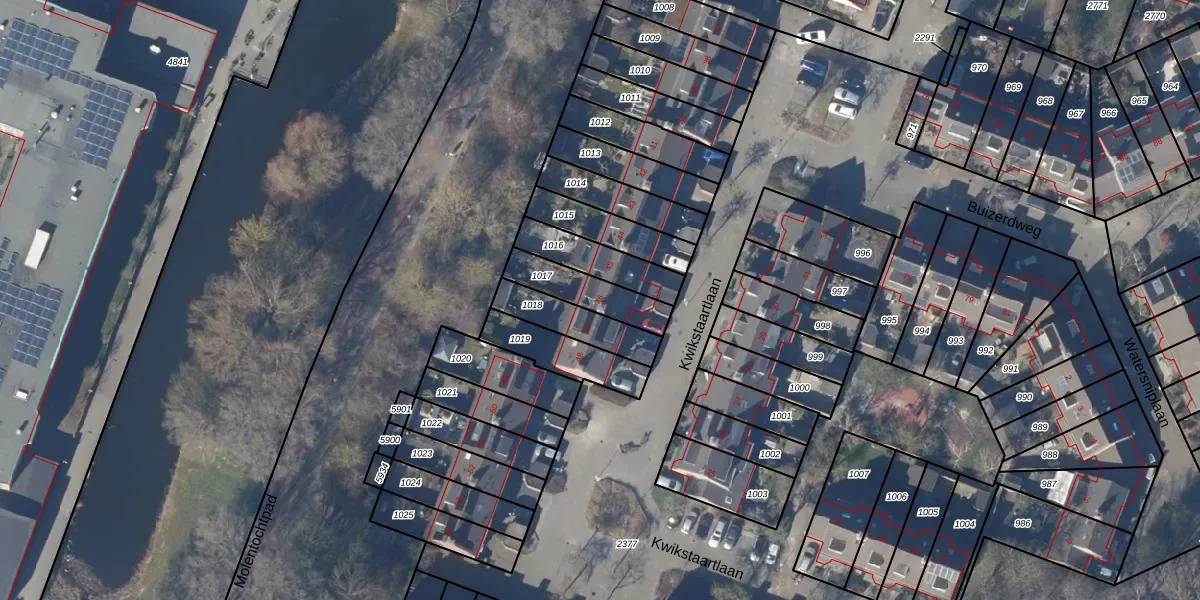 Gebruik de zoekbalk of klik op een perceel voor informatie over de adressen binnen dit perceel.