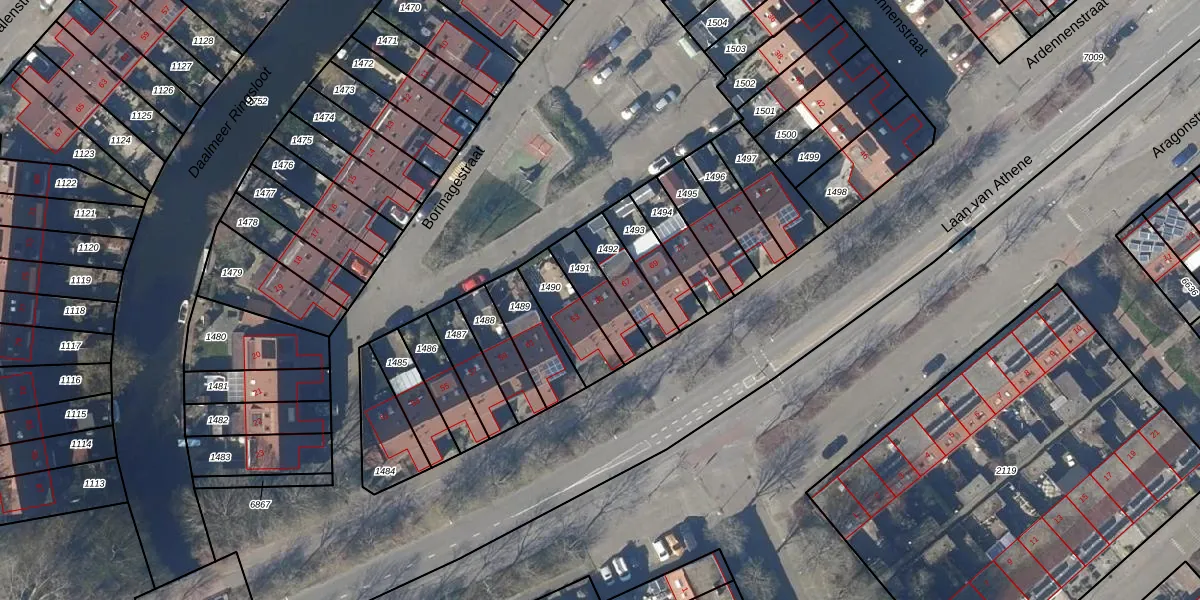 Gebruik de zoekbalk of klik op een perceel voor informatie over de adressen binnen dit perceel.