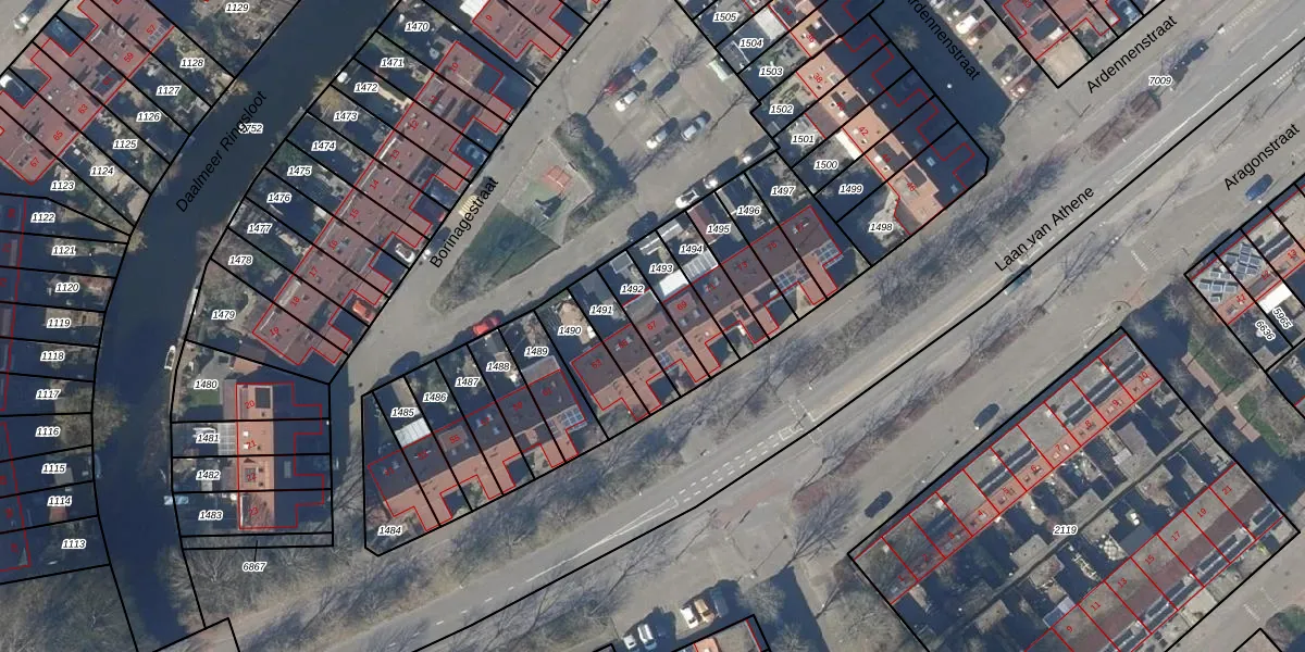 Het perceel waarop Laan van Athene 67 staat heeft een oppervlakte van 128 m². Dit is een middelgroot perceel. De perceeloppervlakte wordt geregistreerd door het Kadaster. Gedetailleerde informatie over de maten van dit perceel kunt u vinden in het rapport Kadastrale kaart met maatvoering van Laan van Athene 67.