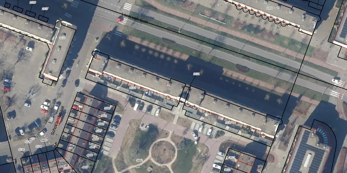 Het perceel waarop Laan van Bath 59 staat heeft een oppervlakte van 882 m². Dit is een groot perceel. De perceeloppervlakte wordt geregistreerd door het Kadaster. Gedetailleerde informatie over de maten van dit perceel kunt u vinden in het rapport Kadastrale kaart met maatvoering van Laan van Bath 59.