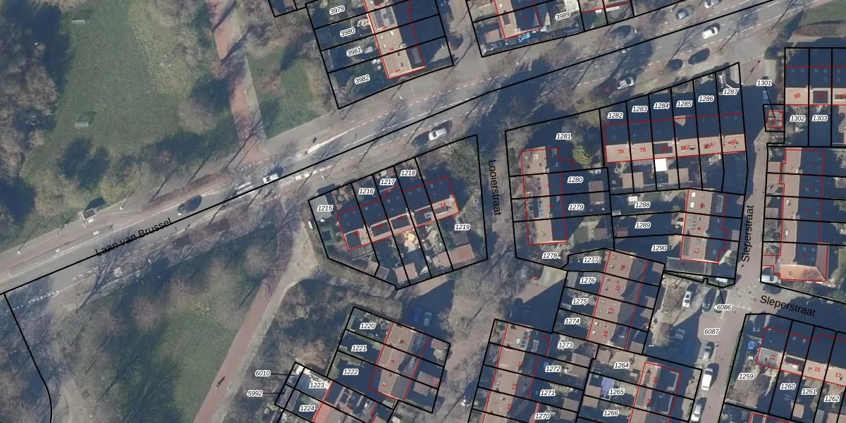 Gebruik de zoekbalk of klik op een perceel voor informatie over de adressen binnen dit perceel.