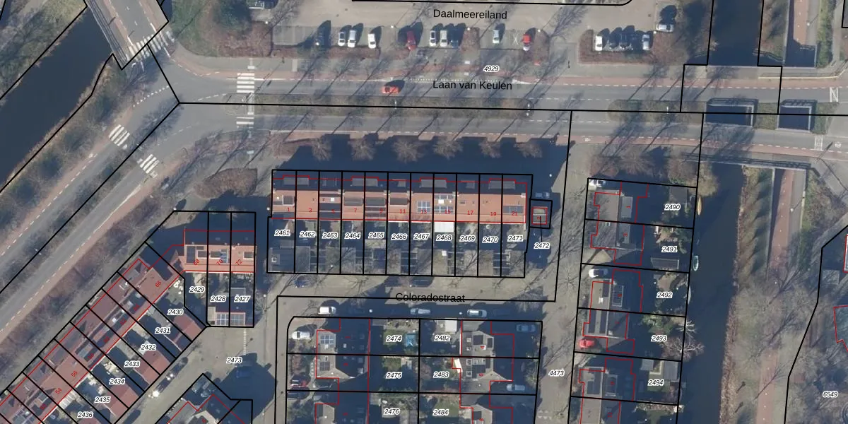 Laan van Keulen 13 is gelegen op kadastraal perceel AMR01I2467. Deze kadastrale aanduiding is uniek en wordt gebruikt door het Kadaster om eigendomsrechten en andere zakelijke rechten vast te leggen. Het perceel maakt onderdeel uit van de kadastrale gemeente Alkmaar.