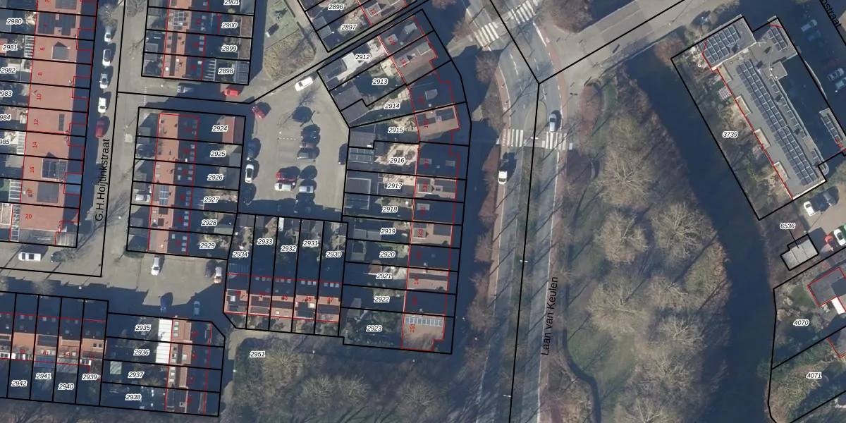 Gebruik de zoekbalk of klik op een perceel voor informatie over de adressen binnen dit perceel.