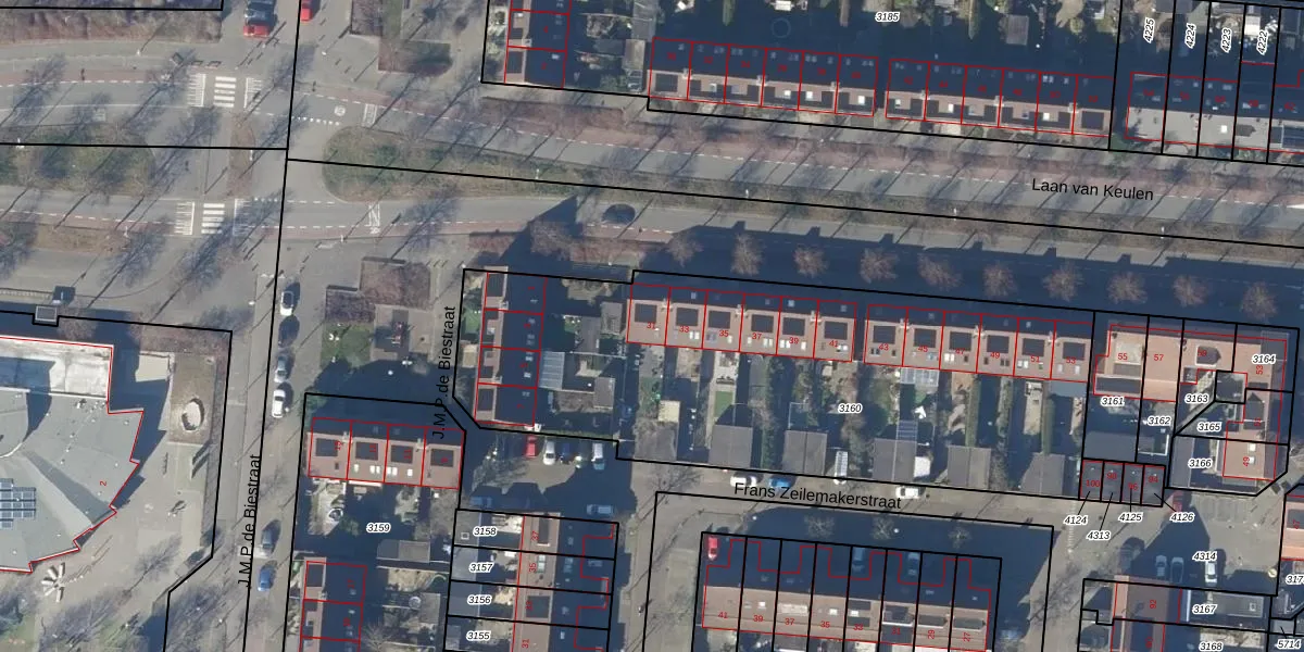 Het perceel waarop Laan van Keulen 31 staat heeft een oppervlakte van 2677 m². Dit is een zeer groot perceel. De perceeloppervlakte wordt geregistreerd door het Kadaster. Gedetailleerde informatie over de maten van dit perceel kunt u vinden in het rapport Kadastrale kaart met maatvoering van Laan van Keulen 31.