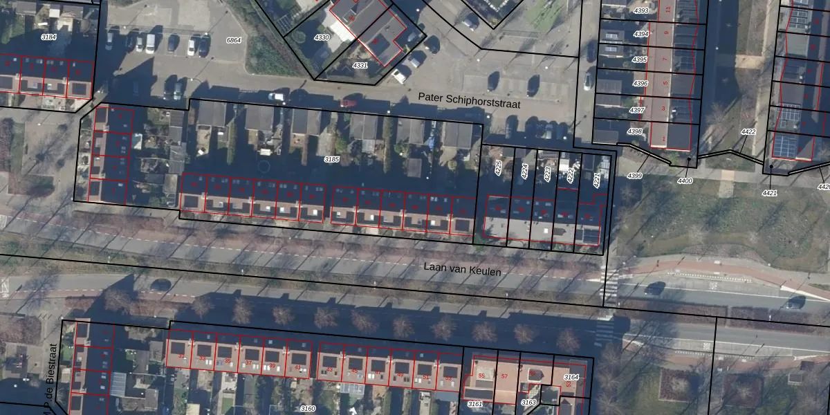 Het perceel waarop Laan van Keulen 48 staat heeft een oppervlakte van 2671 m². Dit is een zeer groot perceel. De perceeloppervlakte wordt geregistreerd door het Kadaster. Gedetailleerde informatie over de maten van dit perceel kunt u vinden in het rapport Kadastrale kaart met maatvoering van Laan van Keulen 48.