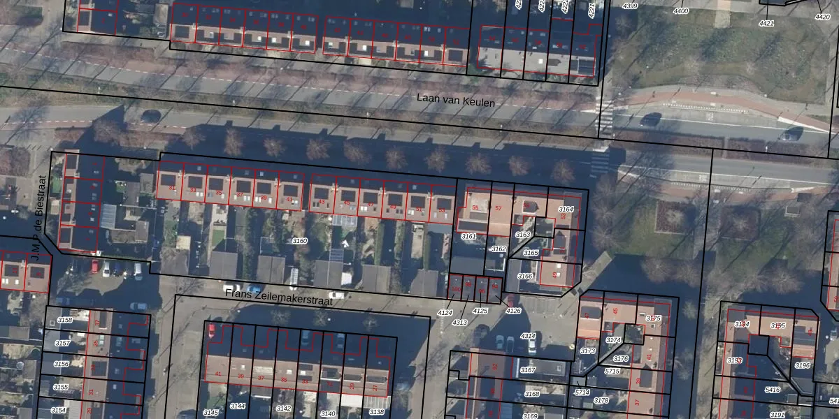 Het perceel waarop Laan van Keulen 51 staat heeft een oppervlakte van 2677 m². Dit is een zeer groot perceel. De perceeloppervlakte wordt geregistreerd door het Kadaster. Gedetailleerde informatie over de maten van dit perceel kunt u vinden in het rapport Kadastrale kaart met maatvoering van Laan van Keulen 51.