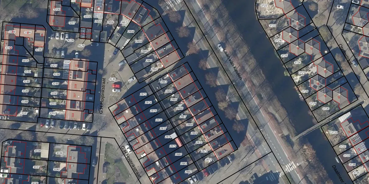 Gebruik de zoekbalk of klik op een perceel voor informatie over de adressen binnen dit perceel.