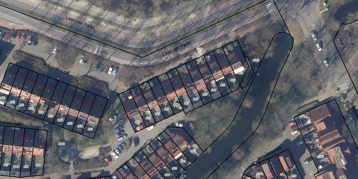Het perceel waarop Laan van Parijs 13 staat heeft een oppervlakte van 146 m². Dit is een middelgroot perceel. De perceeloppervlakte wordt geregistreerd door het Kadaster. Gedetailleerde informatie over de maten van dit perceel kunt u vinden in het rapport Kadastrale kaart met maatvoering van Laan van Parijs 13.