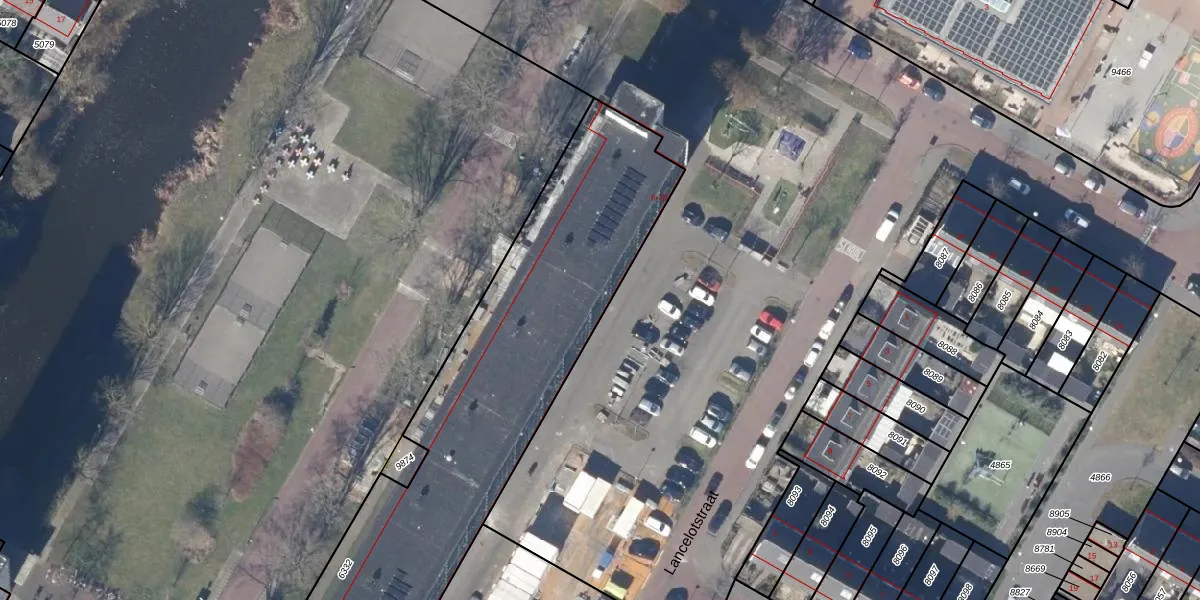 Het perceel waarop Lancelotstraat 16 staat heeft een oppervlakte van 2546 m². Dit is een zeer groot perceel. De perceeloppervlakte wordt geregistreerd door het Kadaster. Gedetailleerde informatie over de maten van dit perceel kunt u vinden in het rapport Kadastrale kaart met maatvoering van Lancelotstraat 16.