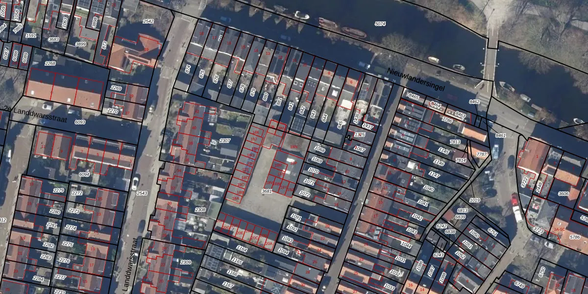 Landstraat 18-N is gelegen op kadastraal perceel AMR01F3681. Deze kadastrale aanduiding is uniek en wordt gebruikt door het Kadaster om eigendomsrechten en andere zakelijke rechten vast te leggen. Het perceel maakt onderdeel uit van de kadastrale gemeente Alkmaar.
