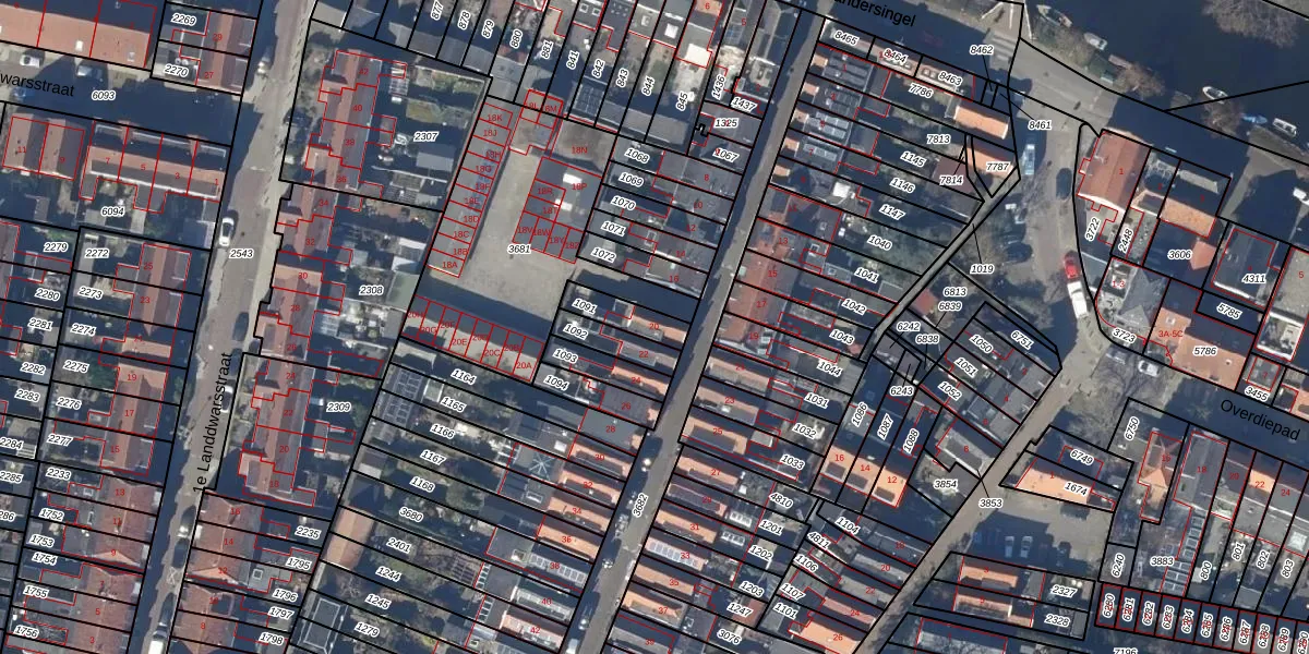 Gebruik de zoekbalk of klik op een perceel voor informatie over de adressen binnen dit perceel.