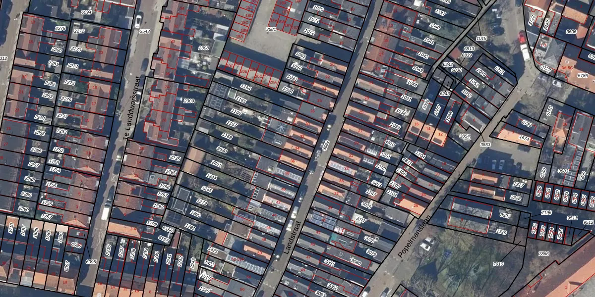 Het perceel waarop Landstraat 34 staat heeft een oppervlakte van 169 m². Dit is een middelgroot perceel. De perceeloppervlakte wordt geregistreerd door het Kadaster. Gedetailleerde informatie over de maten van dit perceel kunt u vinden in het rapport Kadastrale kaart met maatvoering van Landstraat 34.